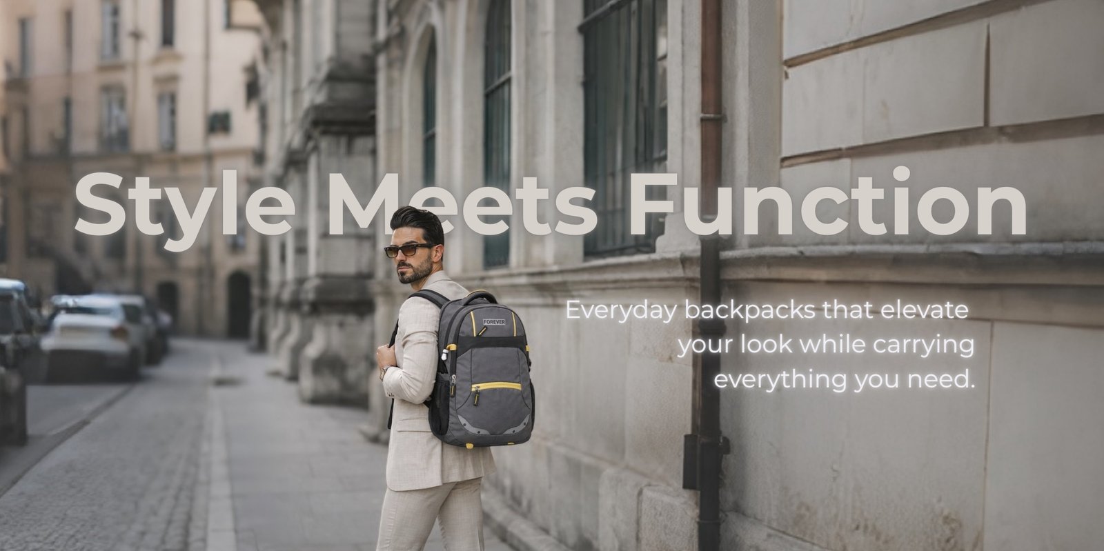 Forever Laptop Backpack for Men & Women | 15.6 Inch Water-Resistant Office & College Bag | Stylish Travel Laptop Bag (Grey & Yellow)
