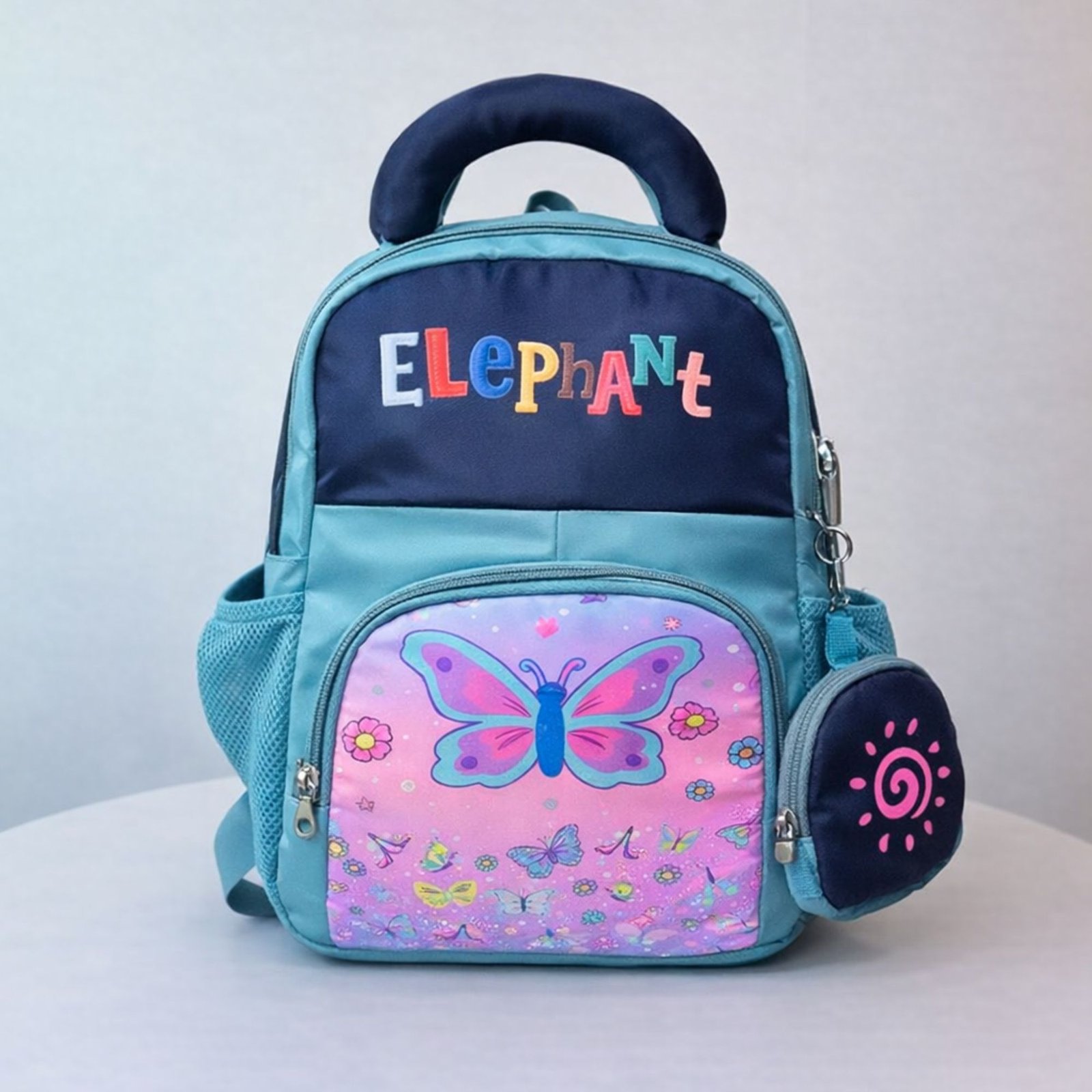 Forever Kids School Backpack for Boys & Girls | Cute Cartoon Printed Bag for Nursery & Primary Students (Butterfly Design)